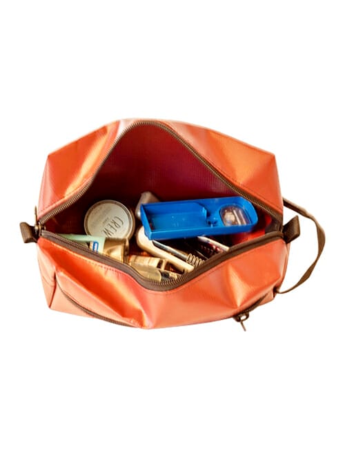 This is the James Bond of shaving kits. It has a pocket where you can put small things such as tooth brushes, seasickness patches, condoms, or whatever else you can think of.